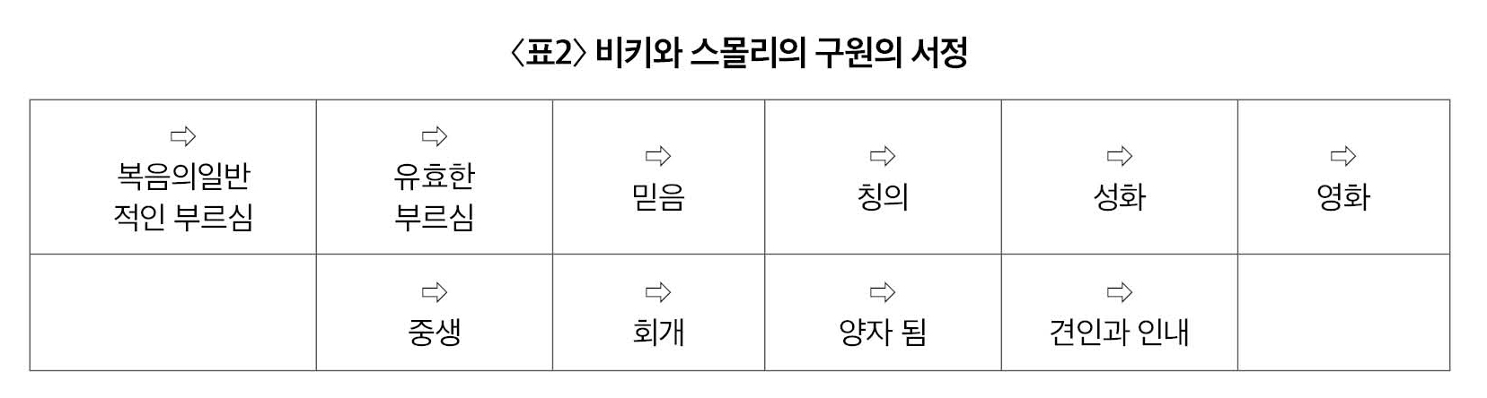 µÑ°, ±¸¿øÀÇ ¼Á¤Àº Çϳª´Ô²²¼ ½ÅÀÚ¿¡°Ô Àû¿ëÇϽô ±¸¿øÀÇ ¿ä¼ÒµéÀ» ½Ã°£Àû ¼ø¼³ª °æÇèÀû ¼ø¼º¸´Ù´Â ³í¸®Àû ¼ø¼·Î ¹è¿ÇÑ °ÍÀ¸·Î ÀÌÇØÇØ¾ß ÇÑ´Ù. °¡·É, “À̸£½ÃµÇ ¶§°¡ á°í Çϳª´ÔÀÇ ³ª¶ó°¡ °¡±îÀÌ ¿ÔÀ¸´Ï ȸ°³ÇÏ°í º¹À½À» ¹ÏÀ¸¶ó ÇϽôõ¶ó”(¸· 1:15)¶ó´Â ±¸Àý¿¡ µû¸£¸é, ȸ°³°¡ ¸ÕÀú ³ª¿À°í ¹ÏÀ½ÀÌ µÚ¿¡ ³ª¿À´Â °Íó·³ º¸ÀδÙ. ÇÏÁö¸¸ ±¸¿øÀÇ ¼Á¤¿¡¼ ¸»ÇÏ´Â ¹ÏÀ½Àº º¹À½ÀÇ ³»¿ëÀ» ´ã°í ÀÖ´Â ¹ÏÀ½À̹ǷÎ, ¼ø¼¸¦ ±»ÀÌ µûÁöÀÚ¸é ¹ÏÀ½ ÀÌÈÄ¿¡ ȸ°³¸¦ ¸»ÇÏ´Â °ÍÀÌ ÁÁ´Ù. Á¶¿¤ ºñŰ¿Í Æú ½º¸ô¸®¿Í °°Àº ½ÅÇÐÀÚµéÀº ¹ÏÀ½°ú ȸ°³¸¦ µ¿½ÃÀûÀ¸·Î Ç¥ÇöÇϱ⵵ ÇÑ´Ù.